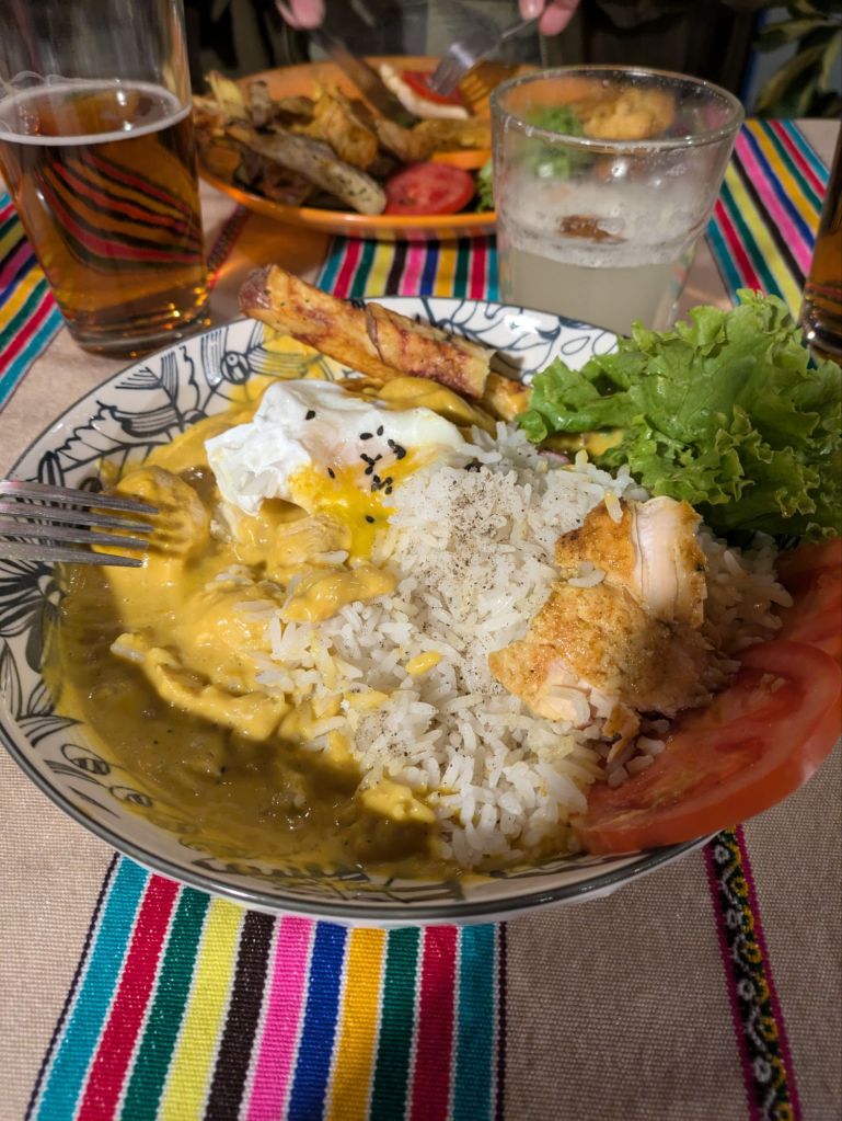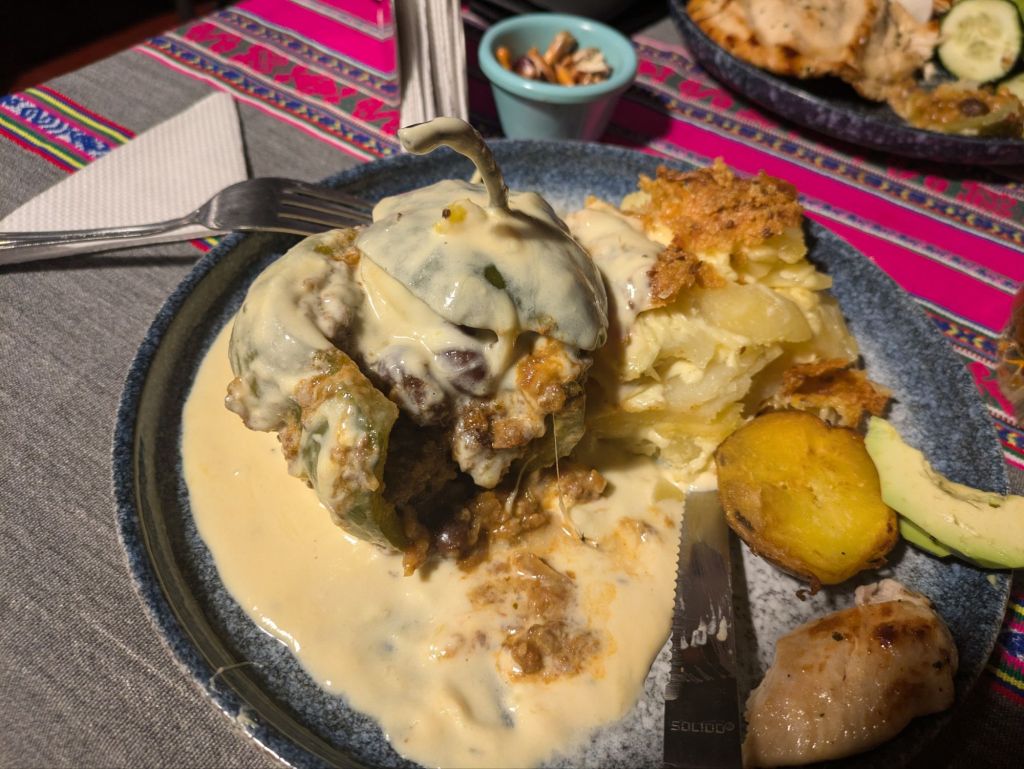 We also managed to try a couple of other local dishes, including Ajo de Gallina (it tastes a lot like chicken Korma!) and Rocoto Relleno, a pepper stuffed with minced meat and raisins and served drizzled in melted cheese, accompanied by a potato cake of sorts.