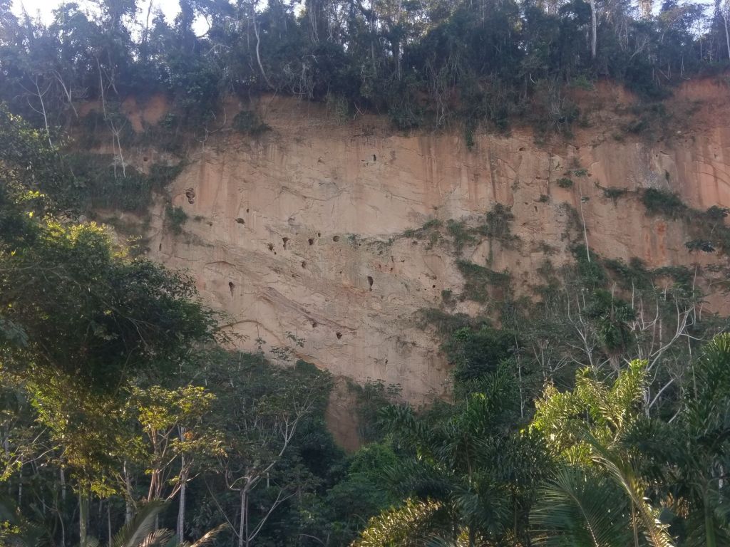 That afternoon was a highlight; visiting the Caquiahuara Macaw Cliff, where pairs of nesting Macaws and Parakeets can be seen in the vertical cliff face. Hiking there was fine, but clambering up the look-out tower reminded us that the phrase “heath and safety” doesn’t seem to translate into Bolivian Spanish! Luckily we’re ugly enough to take care of ourselves.