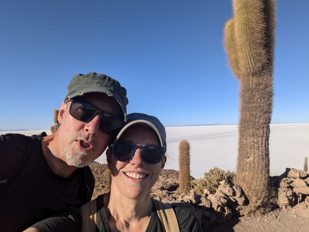 Our afternoon on the salt flats also included visits to a couple of ‘islands’ where rocks rise out of the salt plains and life (mostly in the form of cactuses and a few birds) manages to exist. Some of the cactuses are apparently 2000-3000 years old. Crazy!