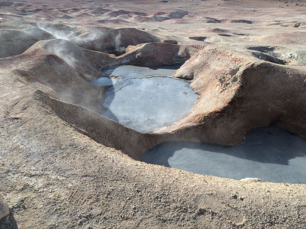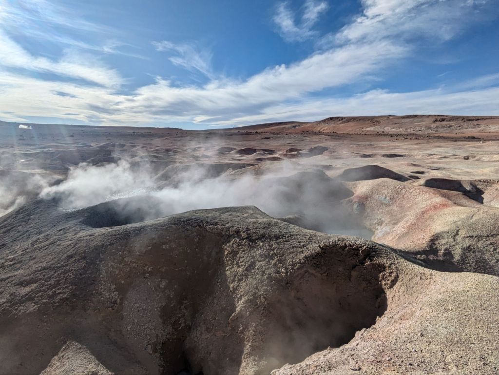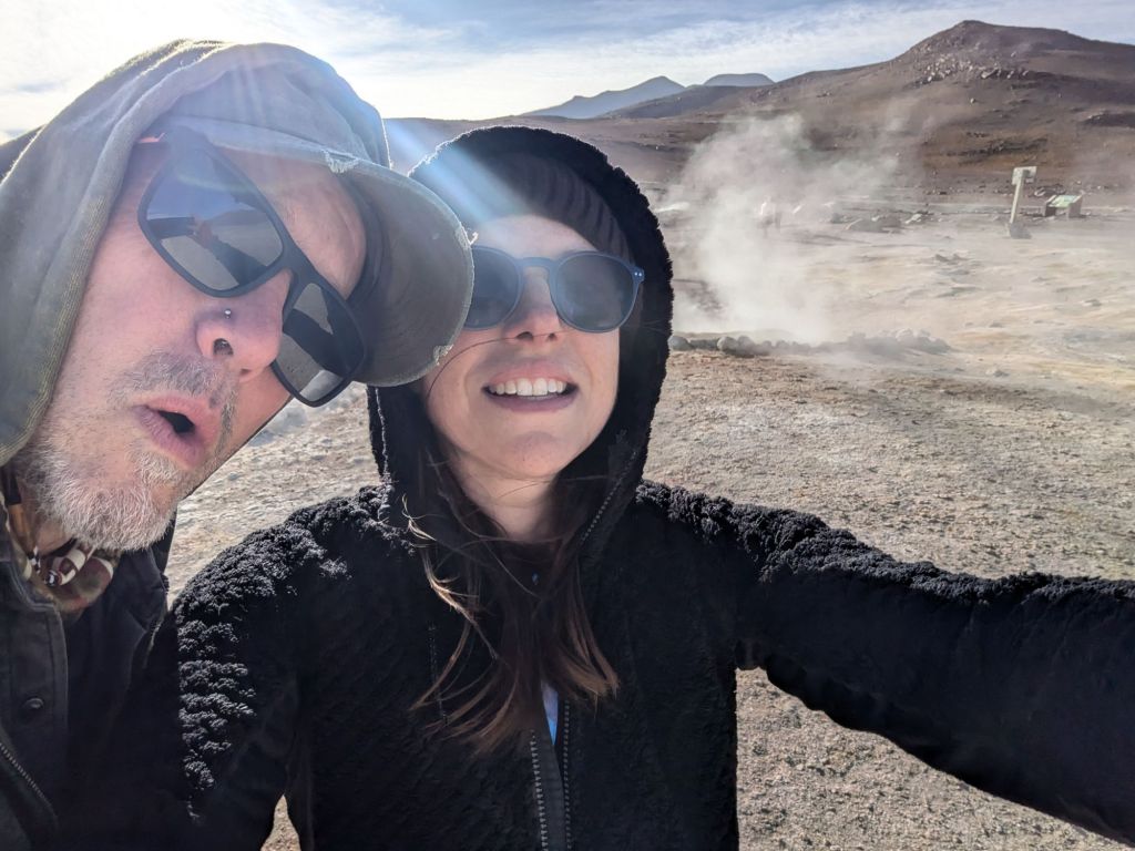 We also passed dozens of volcanoes (mostly inactive or dormant I believe) before heading in the late afternoon to an area of fumaroles caused by volcanic activity. Fumaroles (for the non-geologists amongst you) are essentially vents in the earth, where steam and volcanic gasses are emitted. We would both have liked to have spent longer here as it’s so unlike anything we’ve ever seen, although I admit the sulphurous smell wasn’t something we were sad to leave behind!