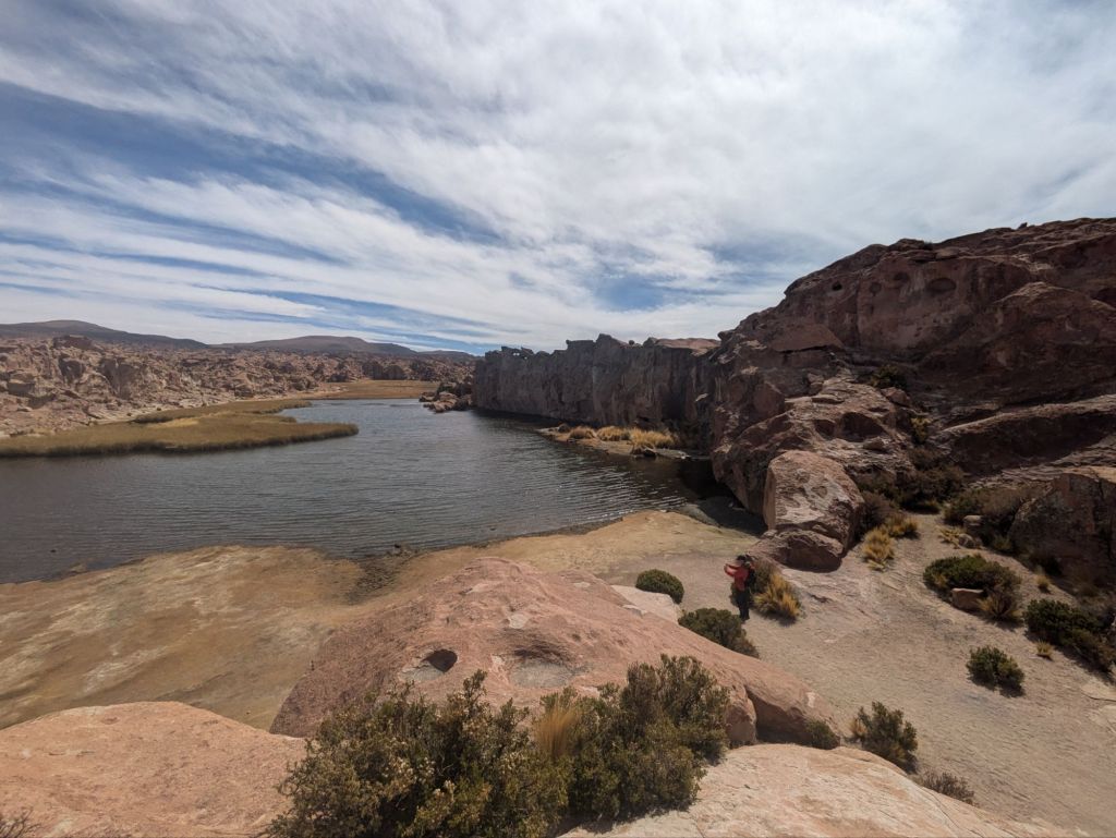 So this was a very long day in the 4×4, getting bounced around for hours. That said, after our lunch stop, we did stop at an oasis in the Altiplano which (whilst nothing like the oasis in the desert back in Peru) was beautiful and actually one of the highlights of the tour for us.