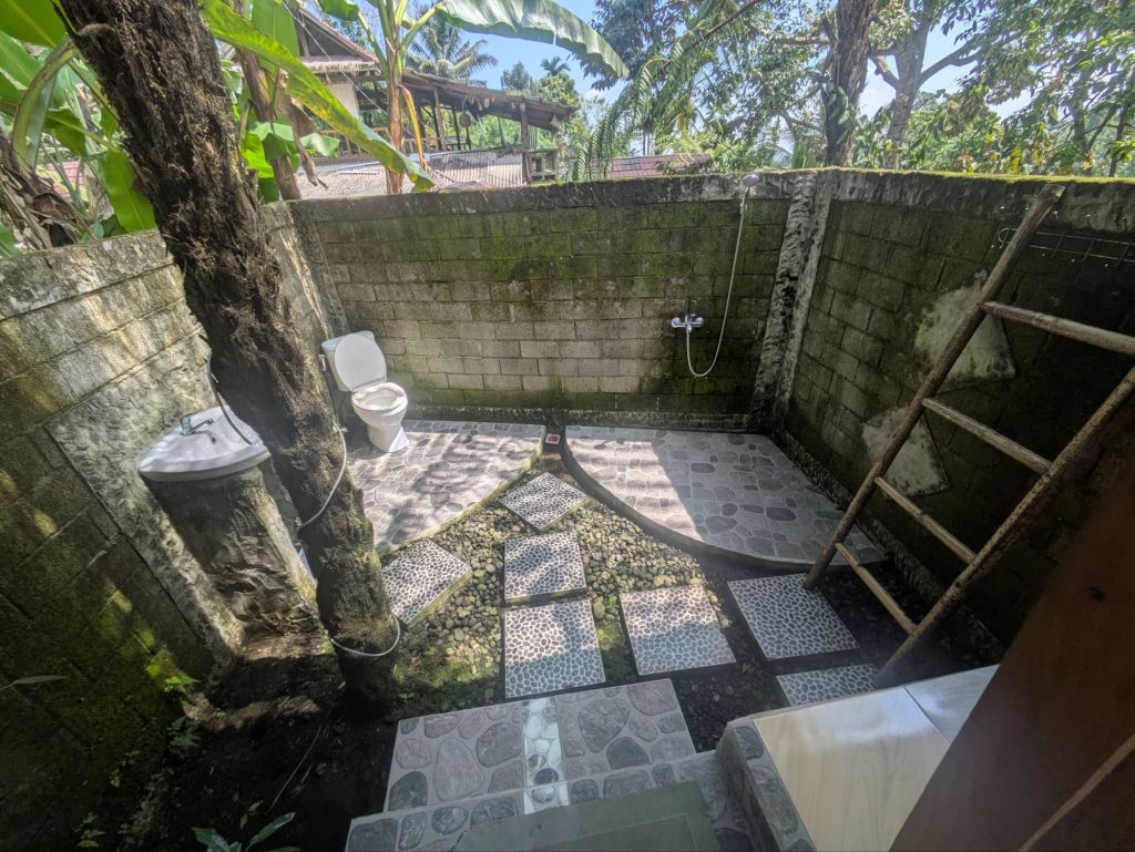 Our hostel for the next couple of days was rustic to say the least (although what else would you expect for £8.87 per night for two people including breakfast!) with an ‘en suite’ which is totally outside (not sure what’s going to happen if I need the loo during a thunderstorm!) and there are several mosques right next to our hostel making the call to prayer (Lombok is a Muslim majority island) very loudly several times. So things were already feeling suitably ‘foreign’!