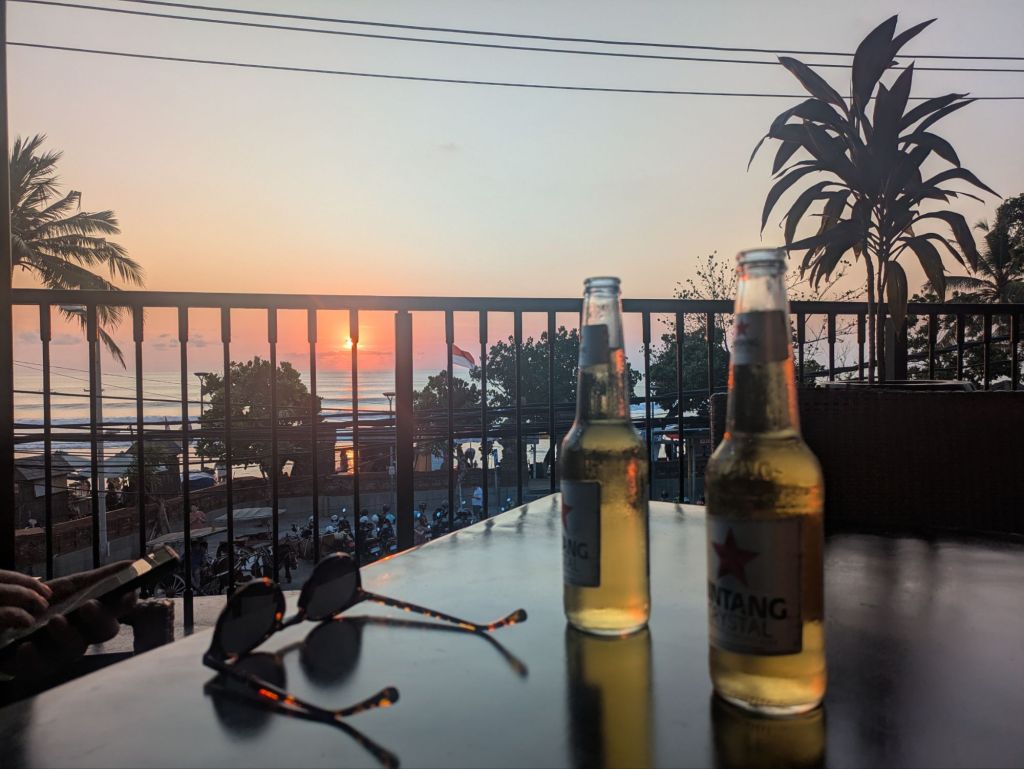 We really didn’t fancy the beach bars and were hoping for something just a little more chilled. But after a walk along the front (dodging the endless mopeds and horsedrawn carriages send party busses!) we found nothing that fitted the bill, and finally conceded defeat and ended up in Hardrock cafe! Not quite what we’d imagined for our trip to Indonesia! At least it was happy hour so the beers were BOGOF!